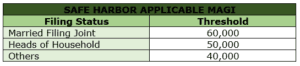 | SAFE HARBOR APPLICABLE MAGI | |