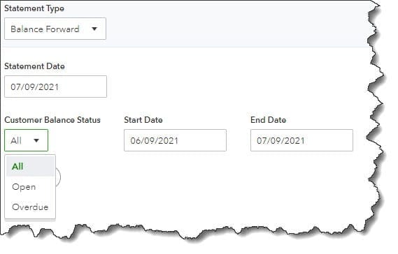 You can choose from among three different types of statements in QuickBooks Online: Balance Forward includes invoices with outstanding balances for a specified range of dates. Open Item statements contain information about all unpaid (open) invoices from the last 365 days. And Transaction Statements show every transaction in a date range that you specify. We’ll describe how to create them so you can decide which makes the most sense for a particular situation.