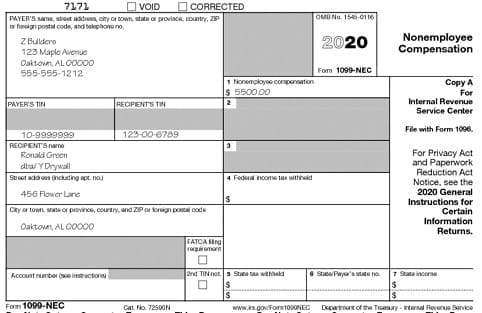 In order to avoid a penalty, copies of the 1099-NECs you’ve issued for 2020 need to be sent to the IRS by February 1, 2021. They must be submitted on magnetic media or on optically scannable forms (OCR forms).